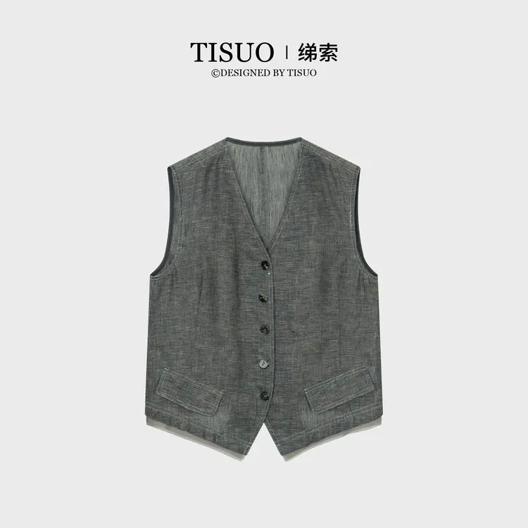 TISUO/绨索‘’海伦私服’‘定制花色亚麻V领马甲TS563063
