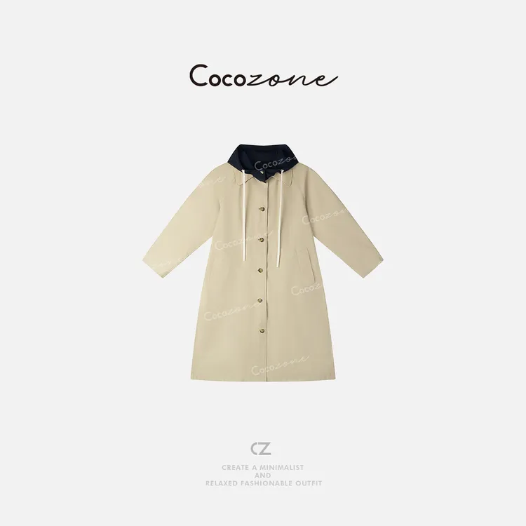 COCO ZONE 刘一一 【双面穿】春季内里拼色连帽长款外套CD1A0044#高级感穿搭 #今日穿搭 #显高显瘦穿搭 #风衣 #刘一一