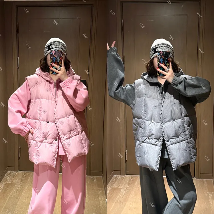#马甲#马甲穿搭#羽绒马甲#穿搭#时尚单品 ~叶大菲家欧货早秋高品钉珠刺绣拼接设计时尚马甲