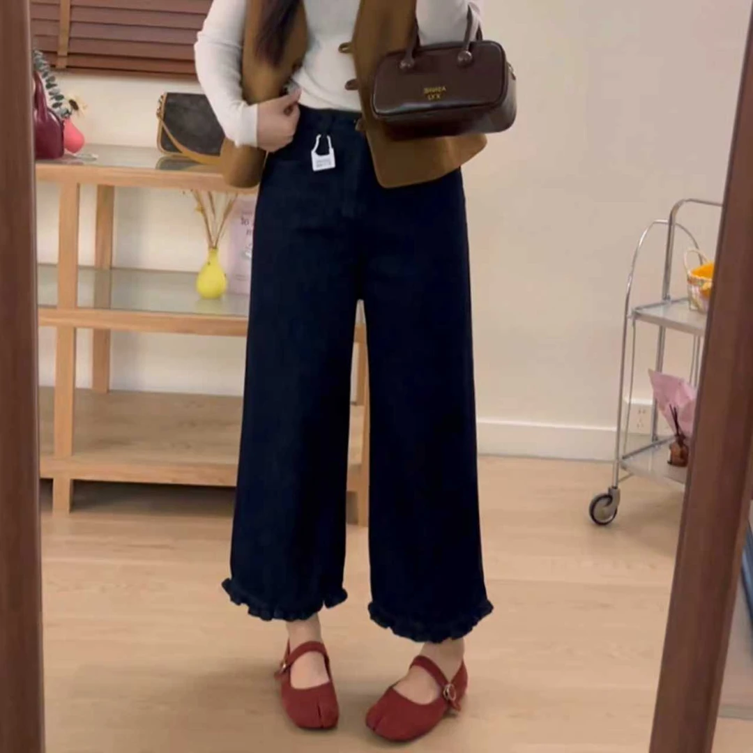 这个裤子姐妹们一定要试试 版型真的太爱了#木耳边牛仔 #宽松显瘦 #百搭时尚新款 #大码胖妹妹穿搭